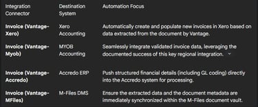 Accelerated Financial Cycles: Automating the transfer of invoice data directly into systems like Xero, MYOB, and Accredo drastically speeds up Accounts Payable processing, improving cash flow management.