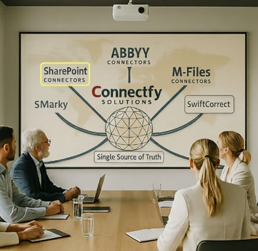 Core Value Proposition: Connectfy ensures that the documents managed within SharePoint are fully integrated into your business processes. We automate the synchronization of master data, link documents directly to transactional records, and trigger cross-system workflows, eliminating redundant data entry and enhancing regulatory compliance.